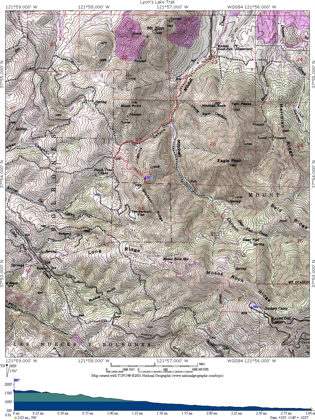 But we went just at the end of the nice part. Don't get me wrong. Dry and brown is nice too, in it's own way, but I'd rather be in the mountains where it's cool. :-) So here is our map, which actually only covers the last half of the journey. I forgot to turn the GPS on until we got to the top. DOH! So you'll miss the little detour we did at the start where we took the wrong path, etc. No big deal. And the pictures I took can be found here.